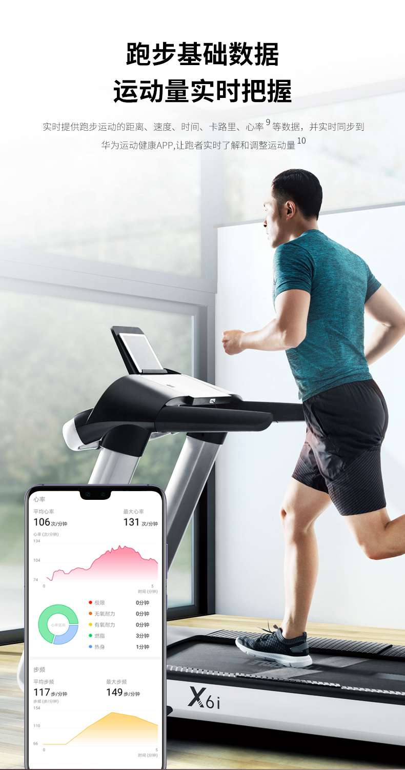 好博体育跑步机-X6心率跑步机,可根据用户运动是实时心率,跑步机自动调节跑步速度、坡度等进行运动强度的调节,更科学;X6i华为版跑步机,可以通过连接华为运动健康APP,监测多种类型跑步数据。欢迎来电咨询~