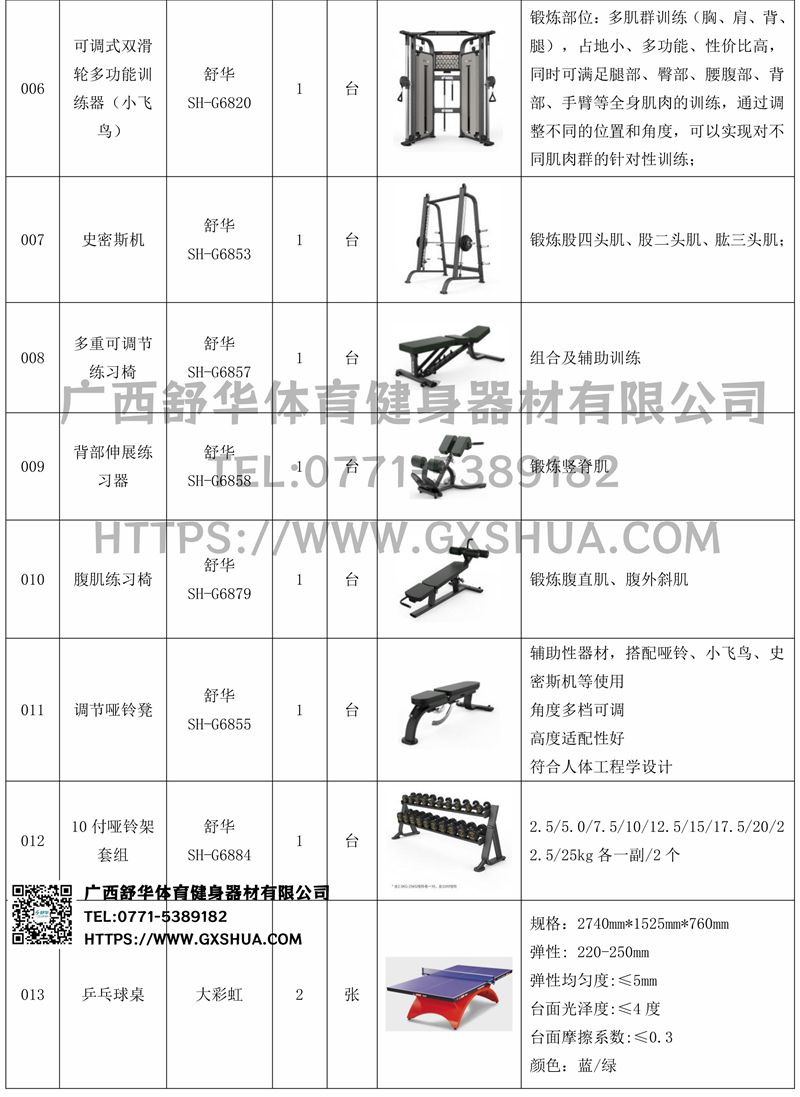 6.好博体育可调式双滑轮多功能训练器(小飞鸟)SH-G6820*1台-锻炼部位:多肌群训练(胸、肩、背、腿),占地小、多功能、性价比高,同时可满足腿部、臀部、腰腹部、背部、手臂等全身肌肉的训练,通过调整不同的位置和角度,可以实现对不同肌肉群的针对性训练;可搭配不同配件,拓展多种训练方法,提供针对性训练、多种组合等训练方式,全方位激活身体机能。