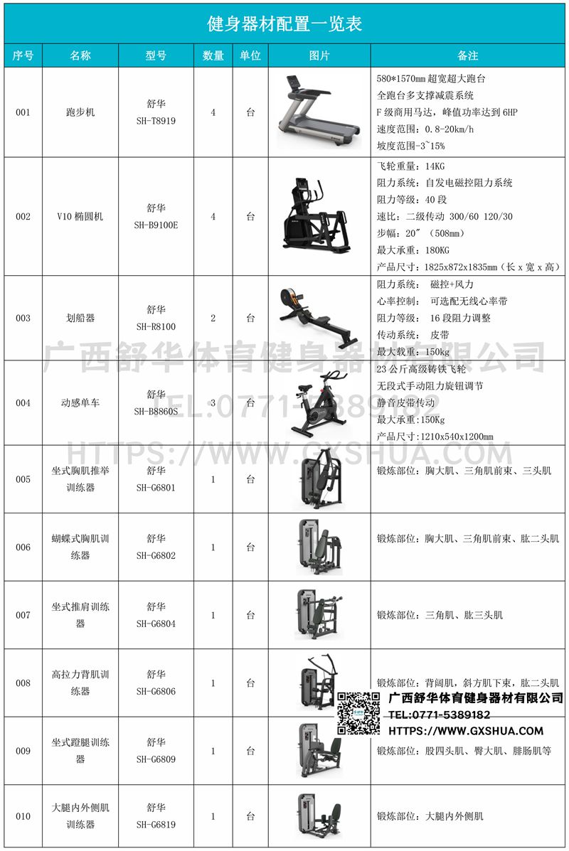 1.好博体育V9跑步机SH-T8919*4台-580*1570mm超宽超大跑台-跑感舒适,跑台整体安全稳定;全跑台多支撑减震平台,保证跑台超强支撑力,达到180kg支撑,满足专业健身房需求。F级商用马达-超强马达,AC 3.0HP 交流,峰值功率达到6HP,F级商用品质。速度范围达到0.8-20km/h;V9跑步机可实现跑台扬升功能,坡度范围-3~15%,满足客户不同的锻炼需求。