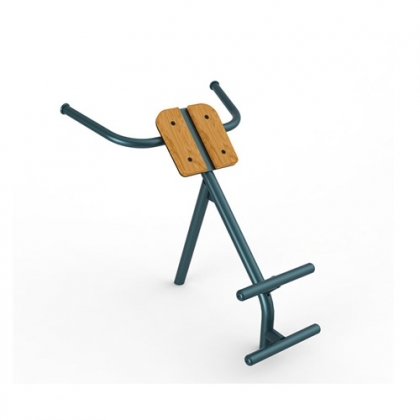 脚踏横杆,小腹贴在靠板上,向前屈体,让上体直向下,返回时上体尽量向上挺,往返进行,可借助两侧扶手用力