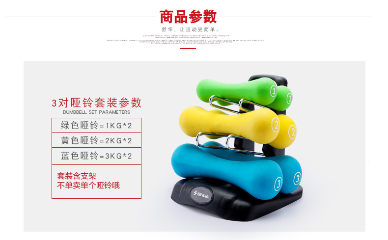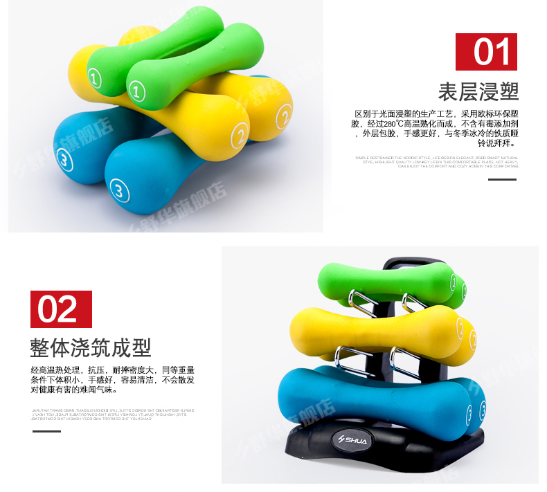 好博体育SHUA浸塑哑铃套装 家用男士女士健身时尚环保健身运动器材