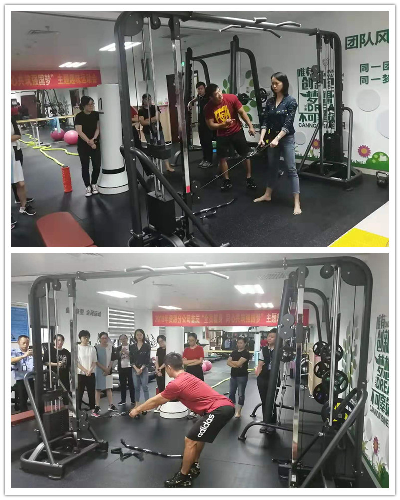 2019年8月26日,南宁某集团职工健身房自6月在广西好博体育采购室内健身器材以来,广西好博体育根据其职工的男女比例及健身需求,为该集团员工提供健身教练上门免费培训健身器材使用及提供健身知识讲座,科学的运动教学指导。经过有趣互动交流,让职工在轻松愉悦的气氛下感受到运动的乐趣。