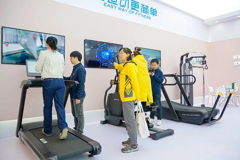 本届教育展,好博体育展出9款校园体育产品,包含备受关注的星火+校园户外运动路径、趣味投篮训练器以及跑步机、椭圆机、综合力量训练器等。