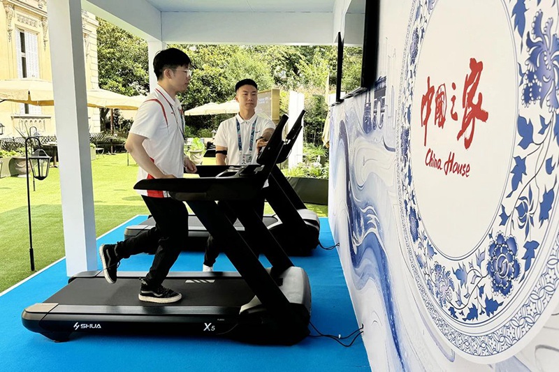 * 巴黎奥运会“中国之家”现场,体育爱好者体验好博体育X5跑步机