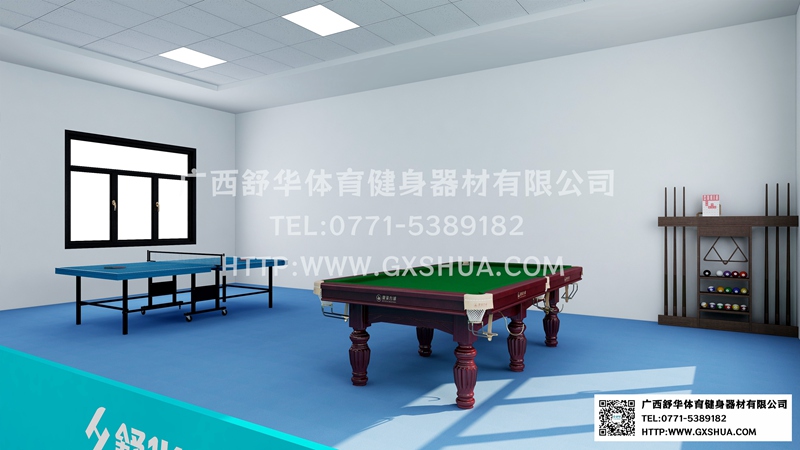 11.台球桌*1张-单位健身房配置台球桌,为员工的业余生活增添了乐趣和选择。与传统的健身器材锻炼相比,台球具有更强的娱乐性和趣味性,能够吸引更多员工参与到健身活动中来,提高健身房的使用率,让员工在工作之余有更多放松身心的方式。